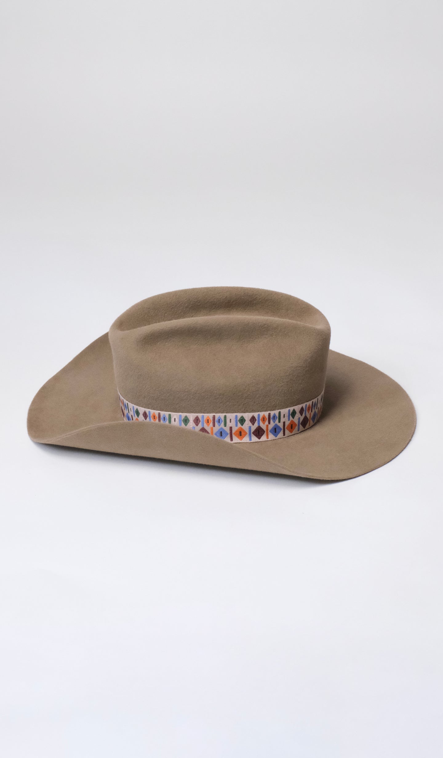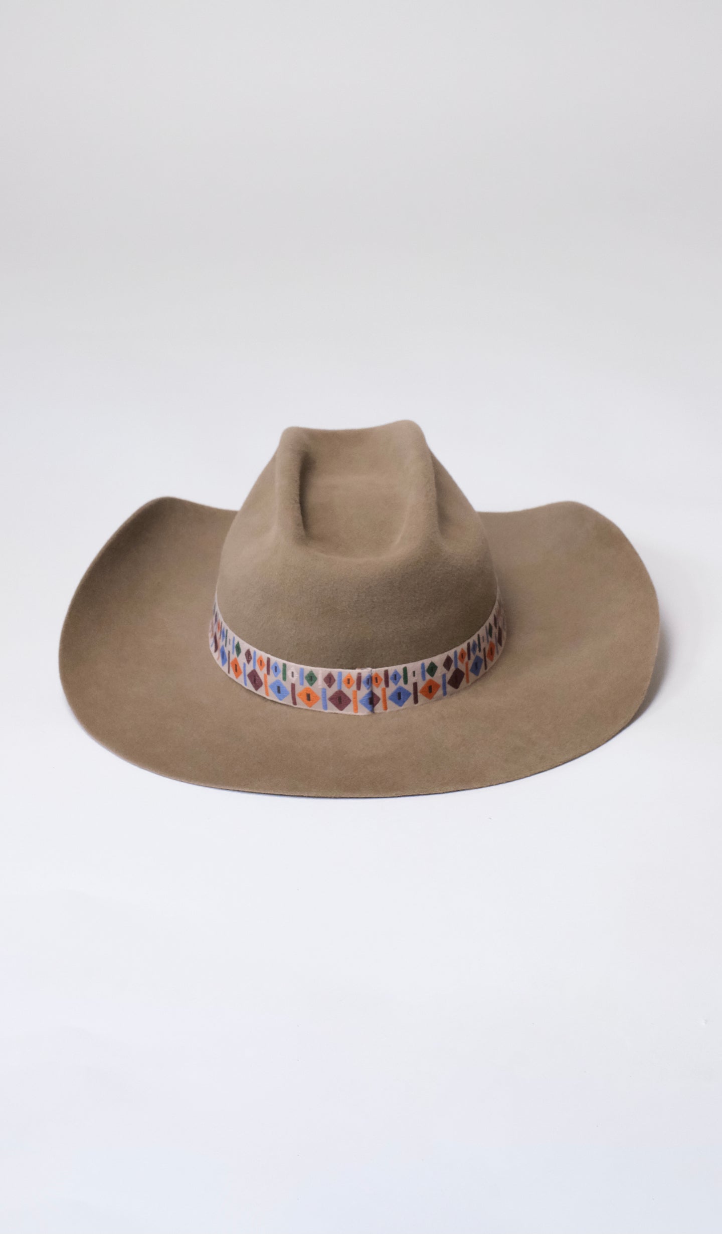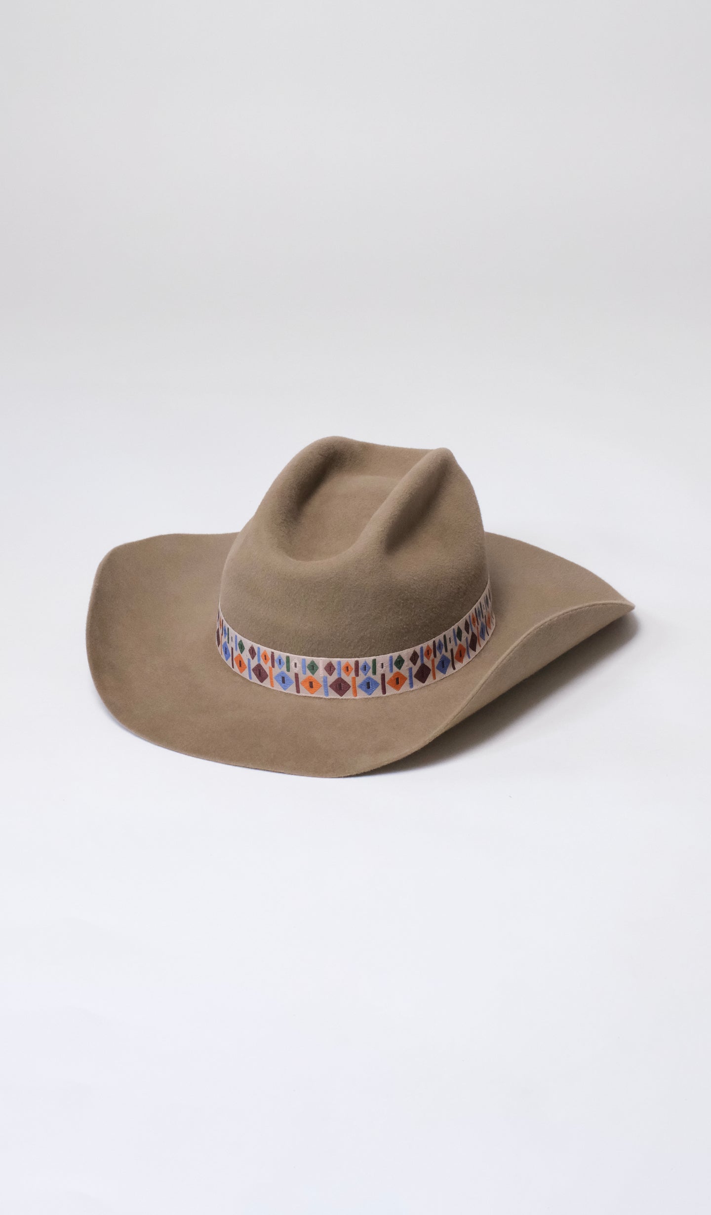 Model Western, realizat manual din fetru 100% păr de iepure, cu boruri de 9,5 cm și calotă înaltă de 13 cm.