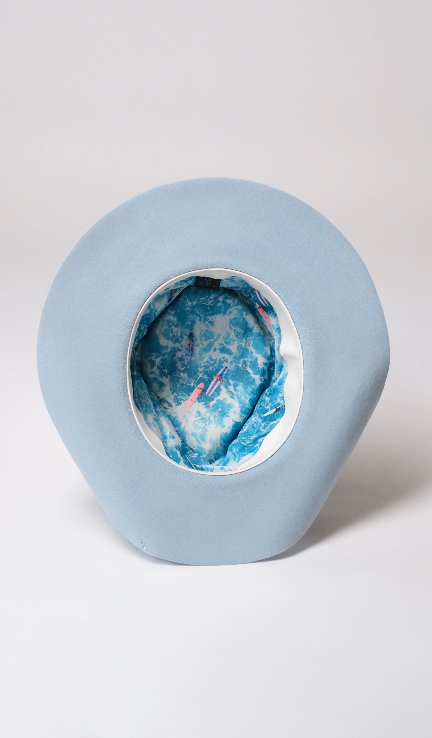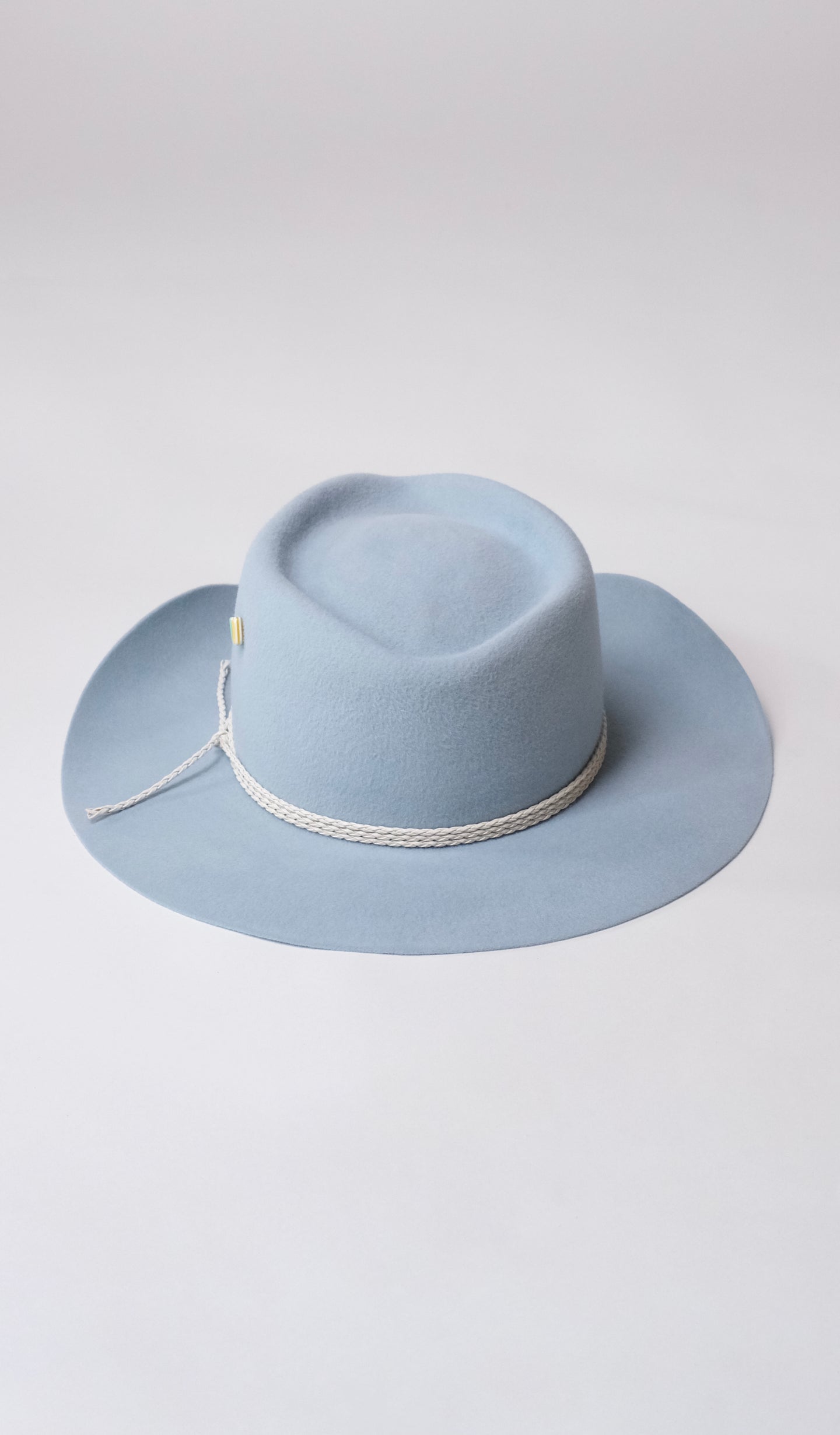 Modelul Western Blue este realizat manual din fetru 100% păr de iepure, cu boruri de 8 cm și calotă de 11,5 cm în punctul maxim.